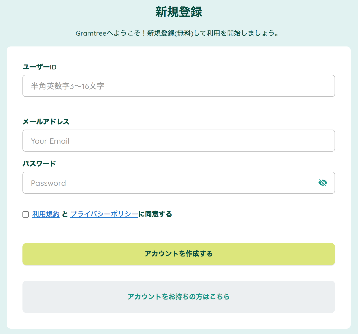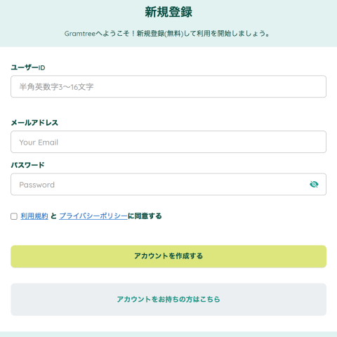 Gramtreeの機能をご利用いただくには、ユーザー登録(無料)が必要となります。