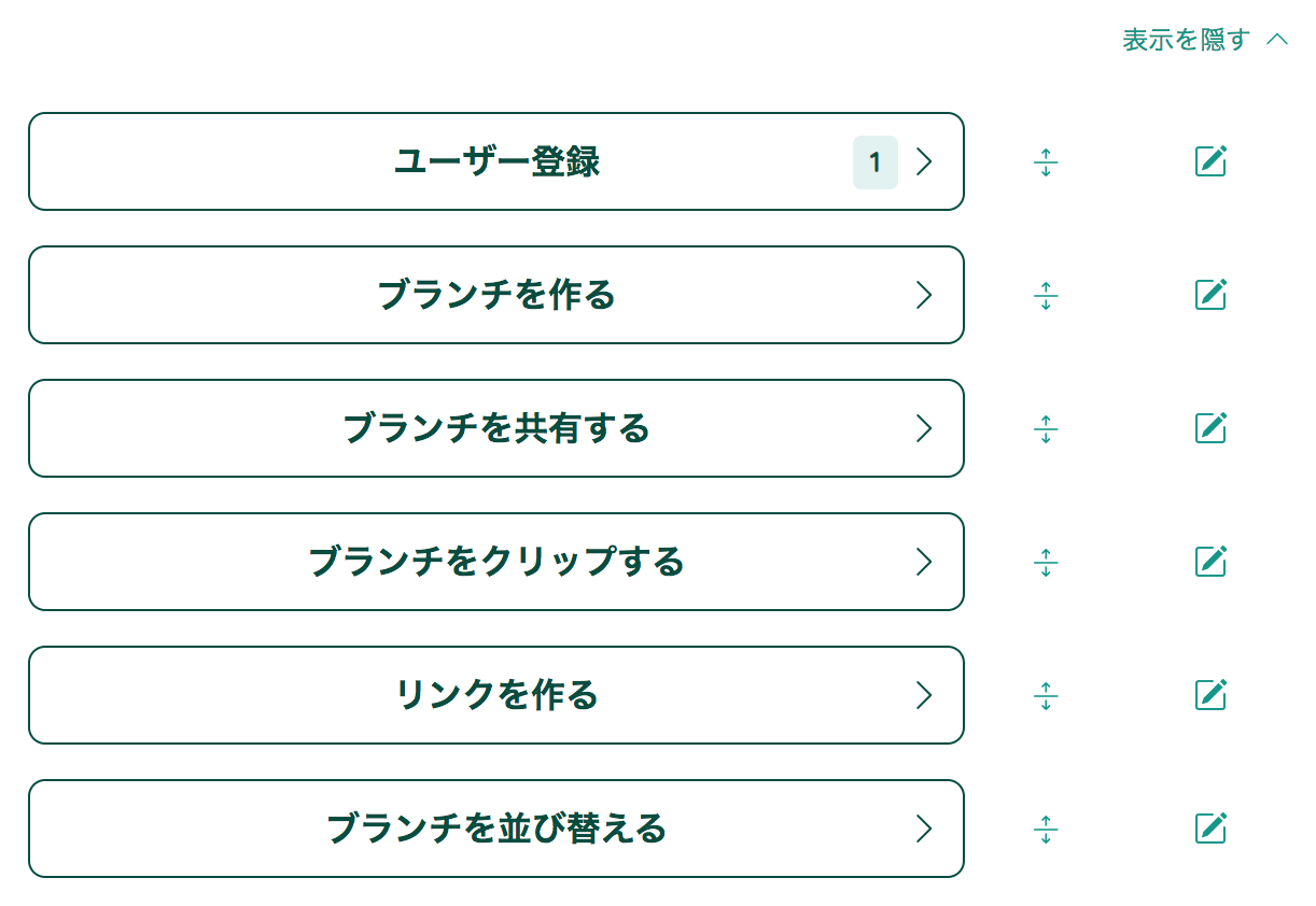 ログインした状態で、ブランチ一覧の「並び替えと編集を表示」をクリック対象のブランチ横に表示されているアイコンをドラッグして移動させます。